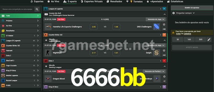 A aposta 6666bb oferece aos jogadores a experiência mais conveniente de apostas em eSports!